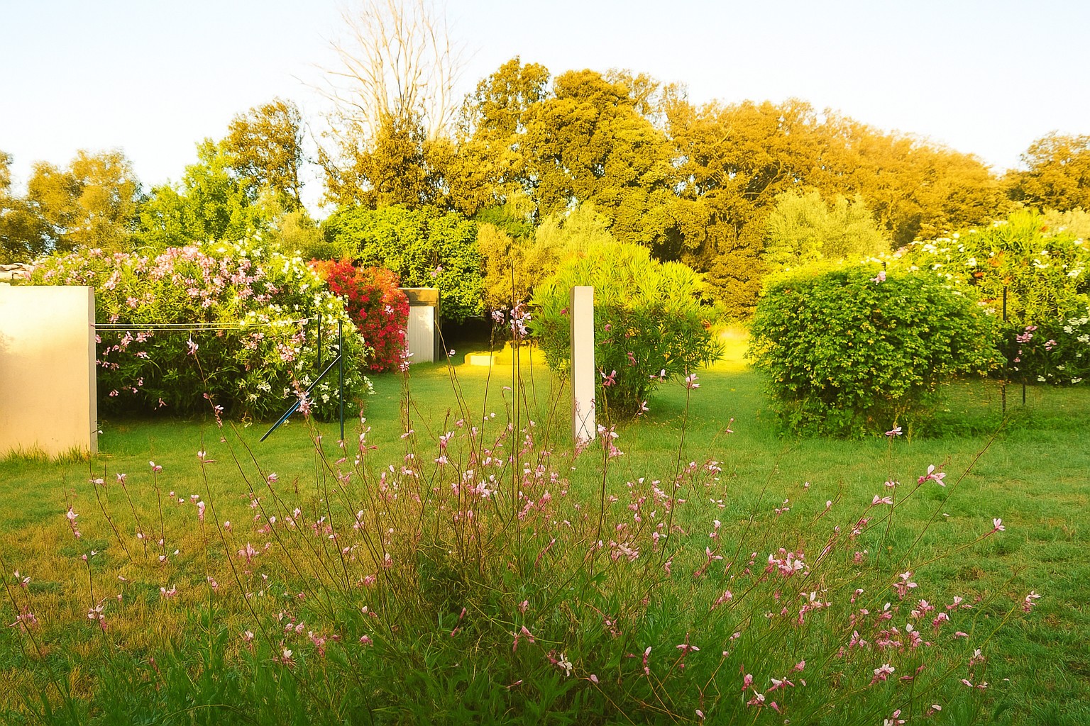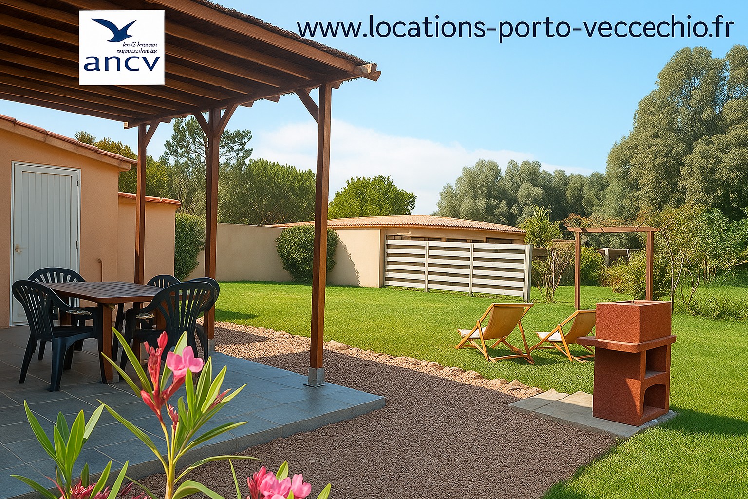 avec salon de jardin, chaises longues et barbecue individuel. De plus vous avez accès au parties communes du jardin avec hamacs, Ping-Pong, Badminton, boules de pétanque.